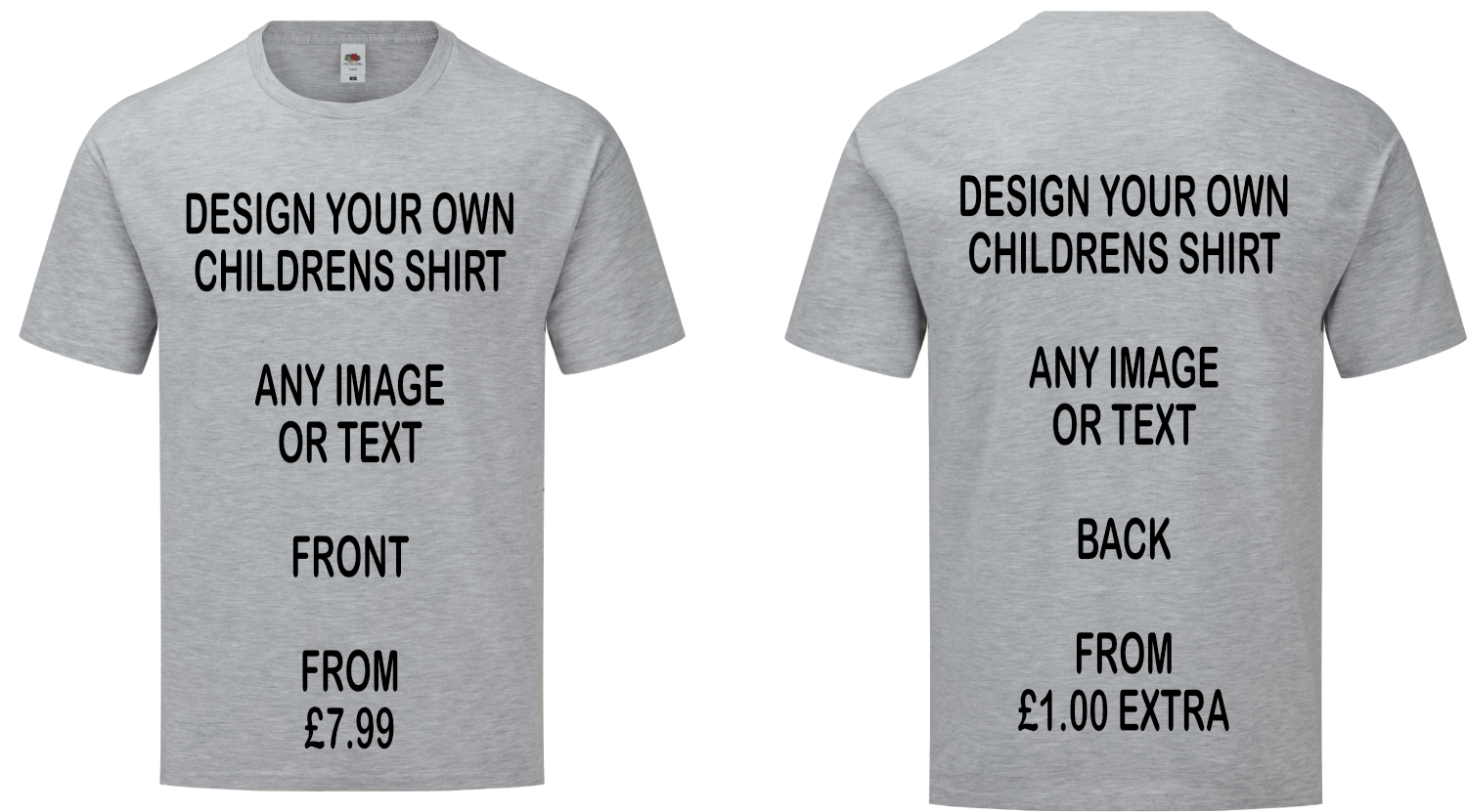 Design your own Childrens T Shirt using our inbuilt software.