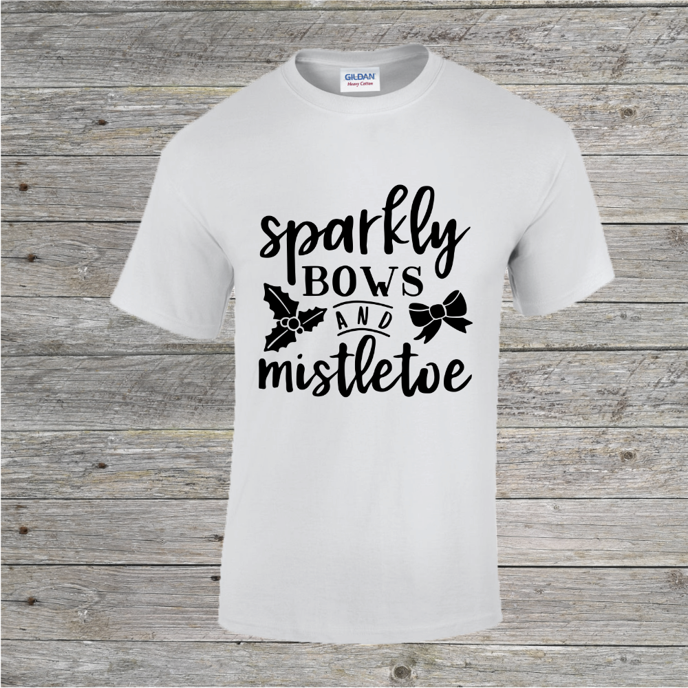 Sparkly Bow and Mistletoe Christmas T Shirt